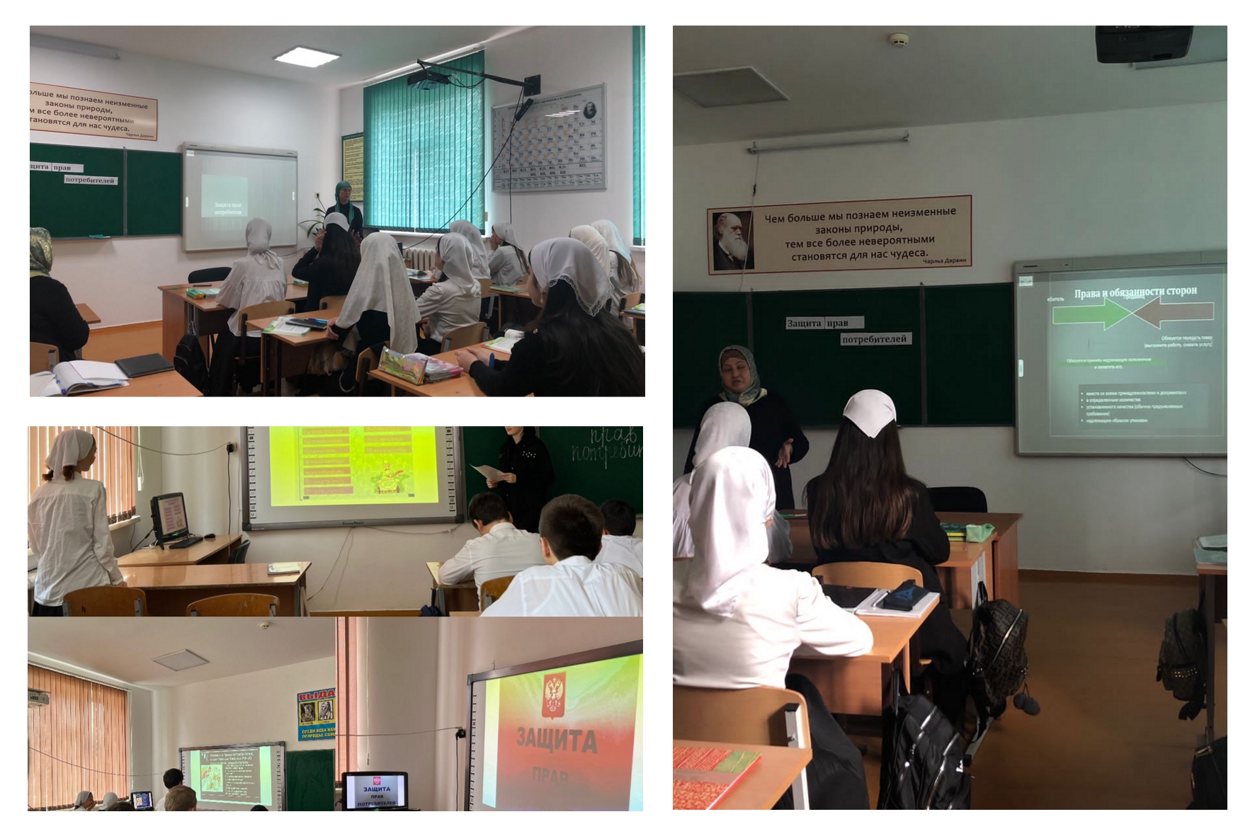 11.03.2023 в МБОУ Шелковская сош 2 классные руководители 8 и 9 классов провели классные часы посвященные провам потребителя с участием учителя обществознания Гусейхановой А.Б.