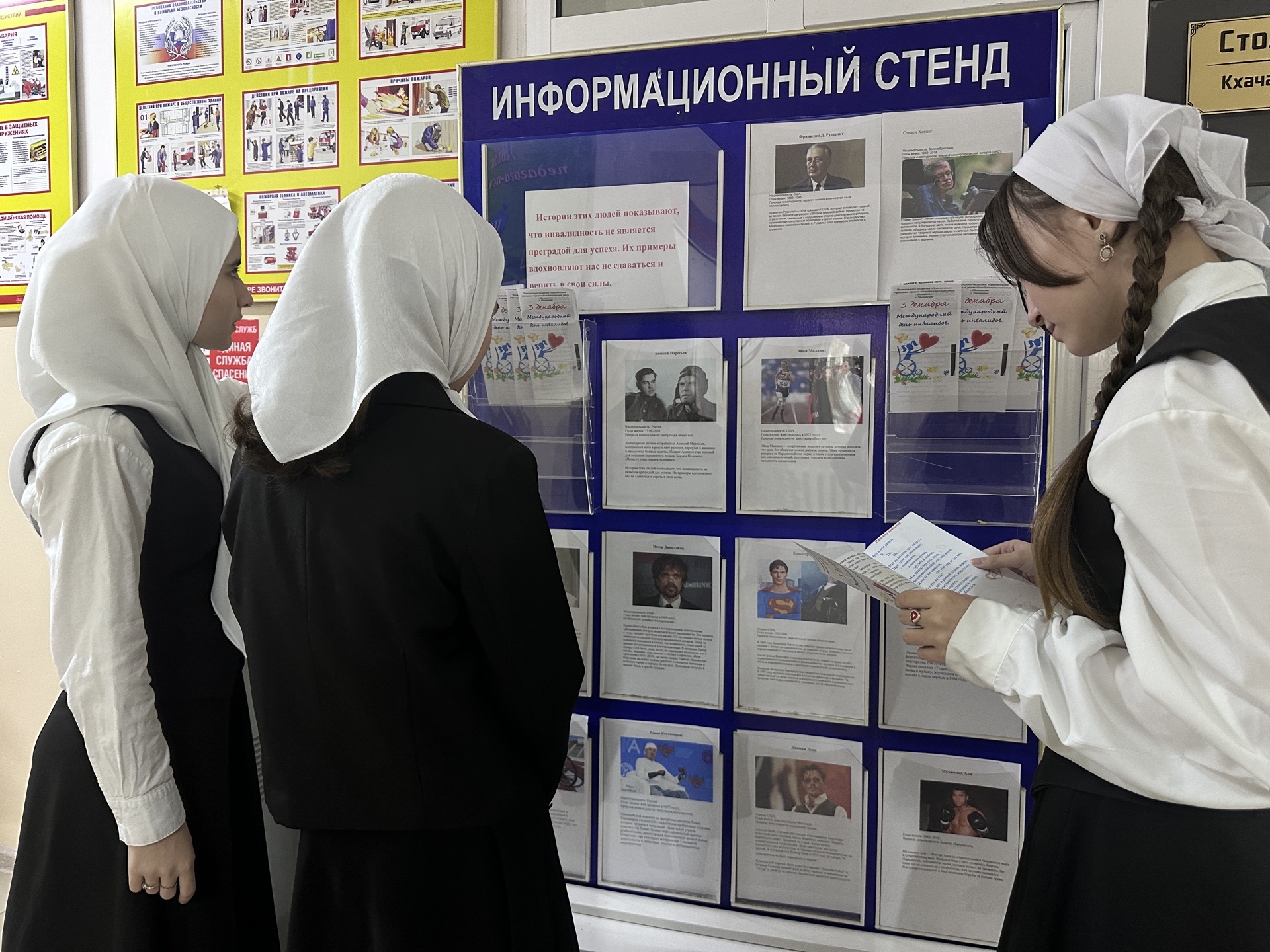 В рамках празднования Международного дня инвалидов, который ежегодно отмечается 3 декабря, в МБОУ "СОШ 2 г. Шелковская" был организован информационный стенд, посвященный вопросам инклюзии и поддержке людей с ограниченными возможностями.