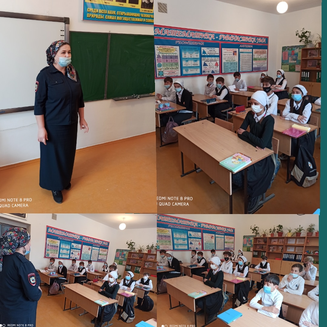 23.11.2020Старший инспектор ПДН ОУУП и ПДН ОМВД России по Шелковскому району Висарагова З.Р. провела профилактическую беседу для обучающихся. Разъяснила ответственность за нахождение несовершеннолетних в общественных местах в ночное время.