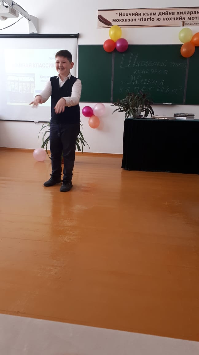 В конкурсе приняли участие 9 обучающихся 5 - 10 классов. Выступающие прочитали произведения отечественных и зарубежных авторов. На мероприятии присутствовали обучающиеся 5-11 классов, учителя, родители конкурсантов. Выступления оценивало жюри. В составе жюри: зам. дир. по УВР Кочорова С.Н., библиотекарь Эльмурзаева П.З., педагог-психолог Хадисова М.Я., учитель информатики Абумуслимова Х.Ш., ученица 10 класса Амирсултанова Милана.
