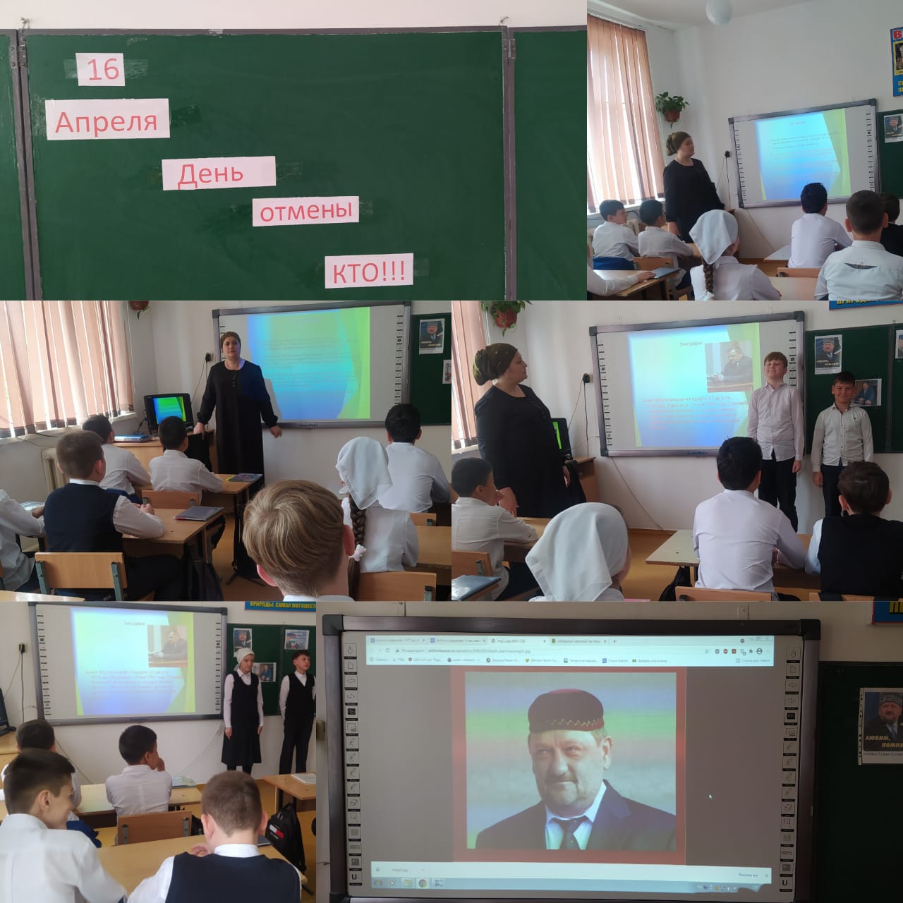 В этот день, 16 апреля 2009 года, Национальный антитеррористический комитет (НАК) передал экстренное сообщение об отмене режима контртеррористической операции на территории Чеченской Республики. Замученная, истерзанная, разрушенная, но не сломившаяся перед международным терроризмом многострадальная чеченская земля с радостью встретила эту долгожданную весть. Старики и дети, мужчины и женщины – все, кто пережил кошмар военных ужасов, вздохнули облегченно: «Мир наступил». Об этом дне мечтал и отдал за него свою жизнь первый Президент ЧР, Герой России Ахмат- Хаджи Кадыров. 16 Апреля в МБОУ "Шелковская СОШ№2" классный руководитель Сайдуева Р.И. провела беседу на тему:16 Апреля День отмены КТО!"