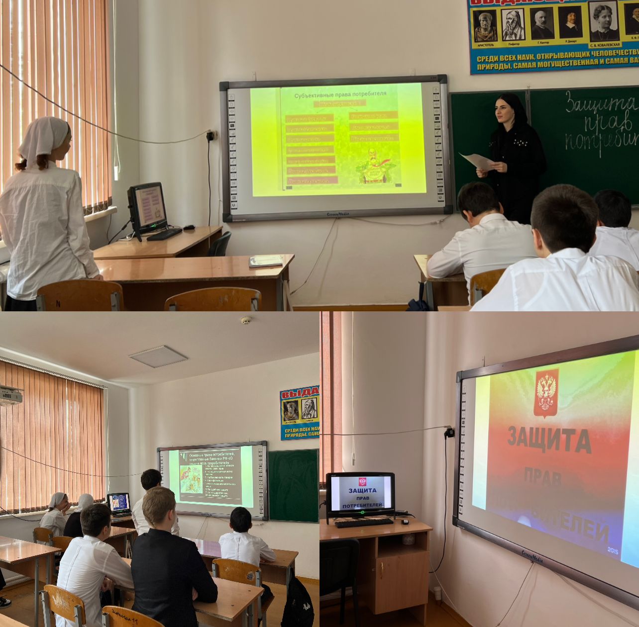 11.03.2023 в МБОУ Шелковская сош 2 классные руководители 8 и 9 классов провели классные часы посвященные провам потребителя с участием учителя обществознания Гусейхановой А.Б.