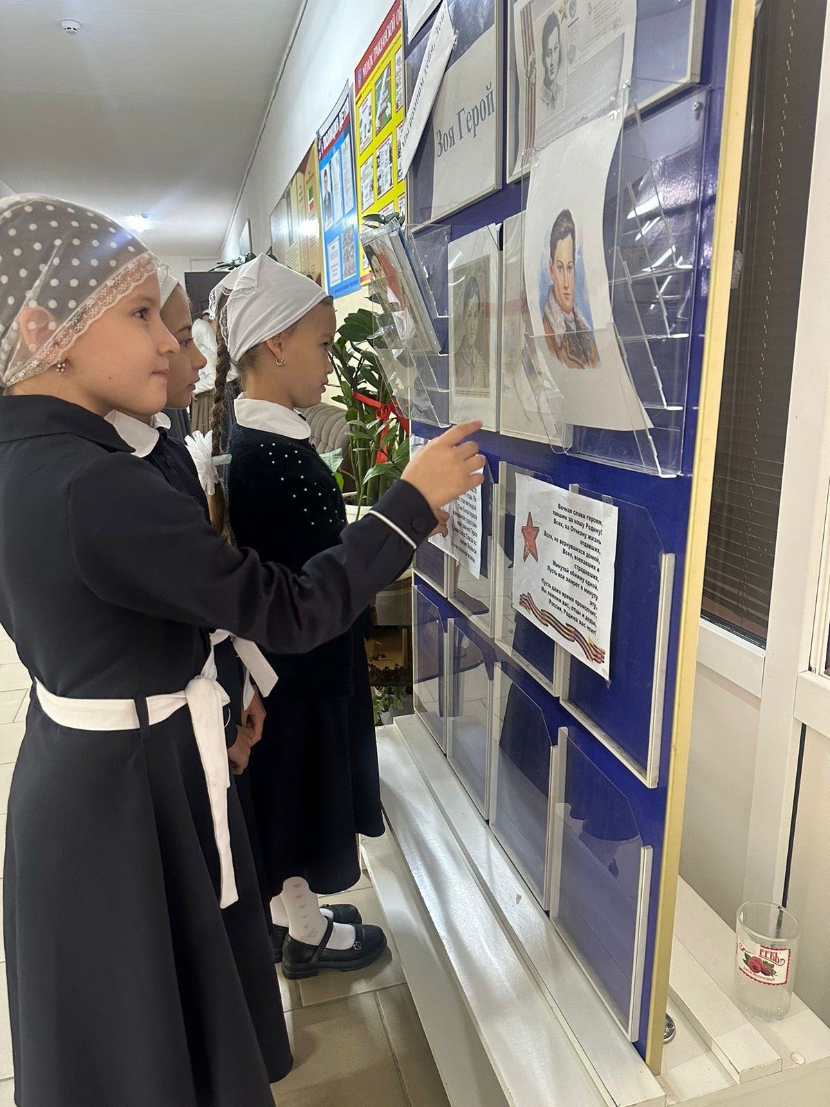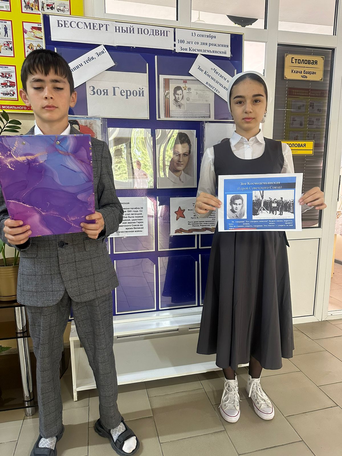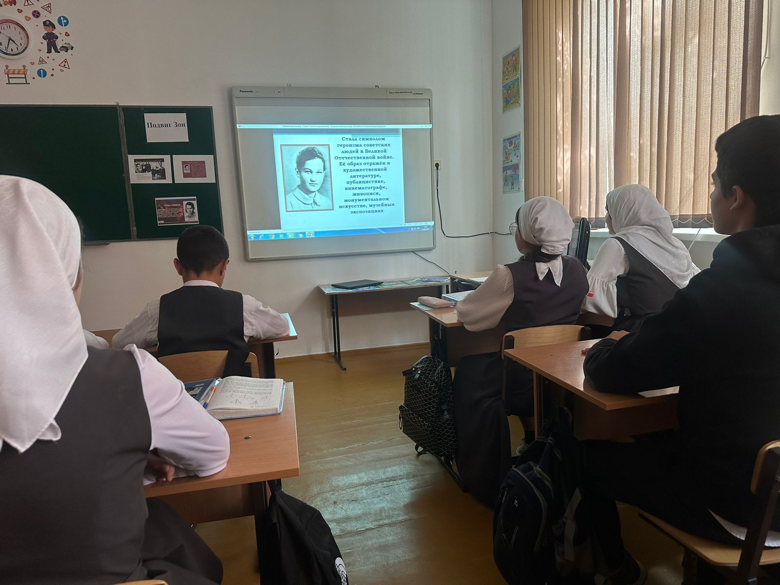 Учащиеся 8 и 2 класса МБОУ «Шелковская СОШ 2» вместе с советником директора по воспитанию Абдуразаковой Джамилей Мавлюдовной подготовили литературно-творческий классный час «Подвиг