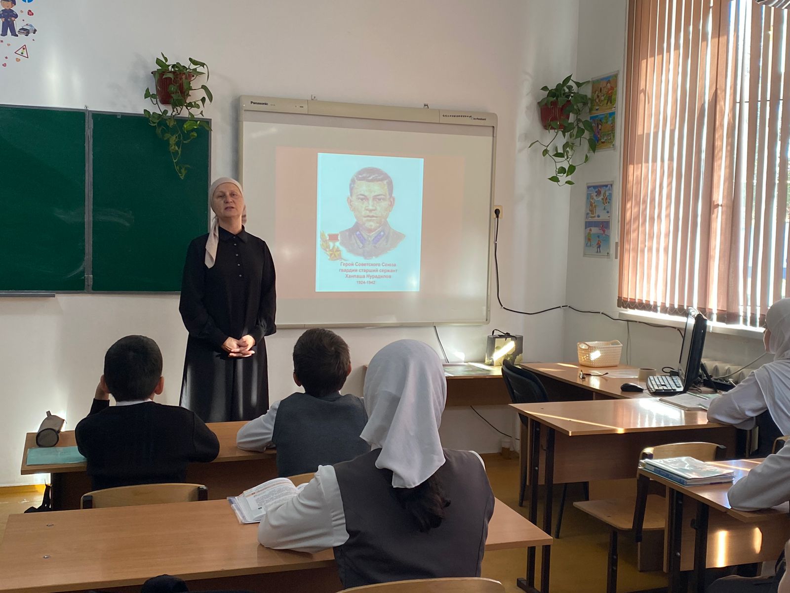 4 ноября 2023 года совместно с отделом УФСБ России по ЧР в Шелковском районе МБОУ «Шелковская СОШ №2» провели открытый урок: «В день завершения окружения немецкой группировки под Сталинградом, для привязки к региону-подвиг пулемётчика-снайпера Ханпаши Нурадилова, погибшего под Сталинградом, уничтожил 920 фашистов».