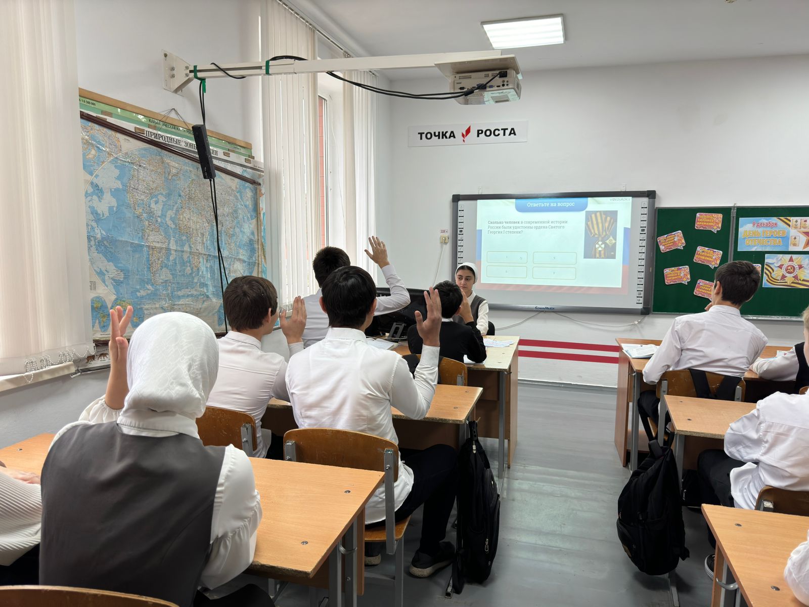 День Героев Отечества в России — это памятная дата, которая отмечается в нашей стране ежегодно 9 декабря. Она установлена Федеральным законом Российской Федерации. В этот день в России чествуют Героев Советского Союза, Героев Российской Федерации и кавалеров ордена Святого Георгия и ордена Славы. Героями не рождаются, героями становятся в час испытаний. В каждую эпоху есть свои герои – люди, которые отважно защищали свое Отечество, внесли огромный вклад в историю своей страны. Люди, которые совершили подвиг, многие из них пожертвовали своей жизнью во благо Родины. 9 декабря в школе прошли мероприятия, посвященные Дню героя Отечества. На уроках мужества сегодня вспоминали героев земли Российской: А. Невского, Д. Донского, К. Минина и Д. Пожарского, А. В. Суворова, М. И. Кутузова, Г. К. Жукова и других славных сынов Отечества. Для 5-7 классов прошел единый классный час «Дни воинской славы России». А для учащихся 9 классов прошла квест- игра «Секрет героизма», советник директора- Абдуразакова Джамиля Мавлюдовна. День Героев Отечества – важная для нас памятная дата, которая является продолжением исторических традиций и способом сохранения памяти о том, какие подвиги были совершены героями нашей страны. Мы не только отдаем дань памяти героическим предкам, но и чествуем ныне живущих героев.