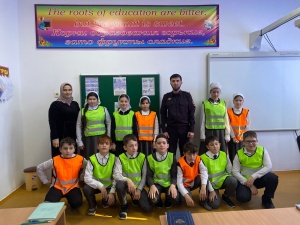 12.01.2024г.В МБОУ "Шелковская СОШ №2" была переведена беседа инспектором старшим лейтенантом полиции ОГИБДД ОМВД России по Шелковскому району Солтаевым Шамханом Шахрудиевичем с учащимися с целью профилактики детского дорожно-транспортного травматизма.