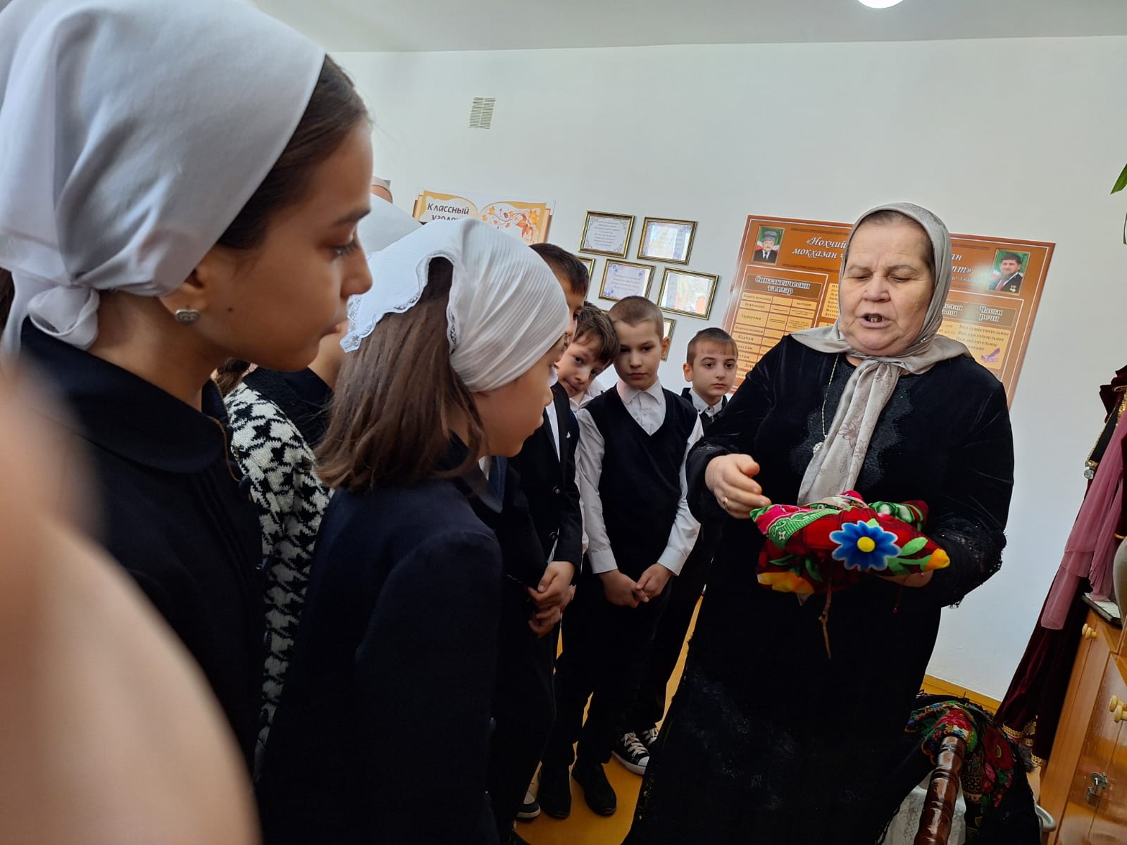 1 февраля 2024 в МБОУ "Шелковская СОШ 2" руководитель школьного краеведческого музея Хесимханова Ж.И. провела экскурсию для обучающихся 3 класса.Ребятам рассказали о назначении каждого предмета быта, как он называется на родном языке. Ребятам было интересно, в ходе экскурсии они задавали вопросы.
