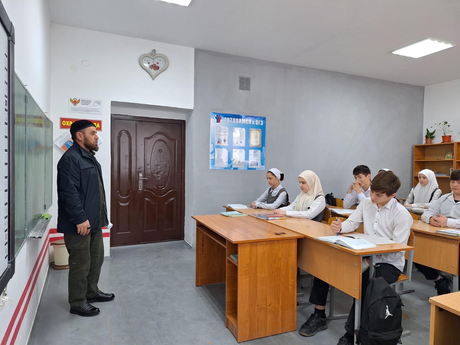 В МБОУ "Шелковская СОШ 2" 12.02.2024 года имам ст.Шелковская Кусаев Н.М. провел беседу с обучающимися 8-9 классов по теме "Ислам о значимости мира и согласия в обществе". Беседа проведена с целью духовно-нравственного воспитания обучающихся и толерантного отношения к людям.