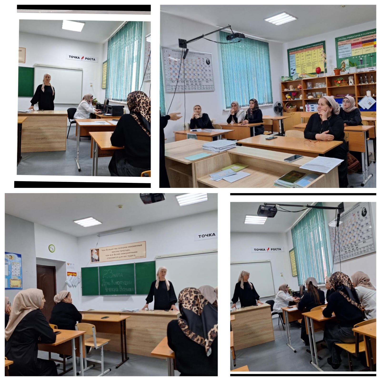 22 марта 2024 заместитель директора по ВР МБОУ "Шелковская СОШ 2" Кочорова С. Н. , провела торжественное собрание с трудовым коллективом, посвящённое Дню Конституции Чеченской Республики. В своём выступлении Кочорова С. Н. отметила, что неоценимый вклад внёс в установление мира в Чеченской Республике Первый Президент Чеченской Республики, Герой России Ахмат-Хаджи Кадыров.