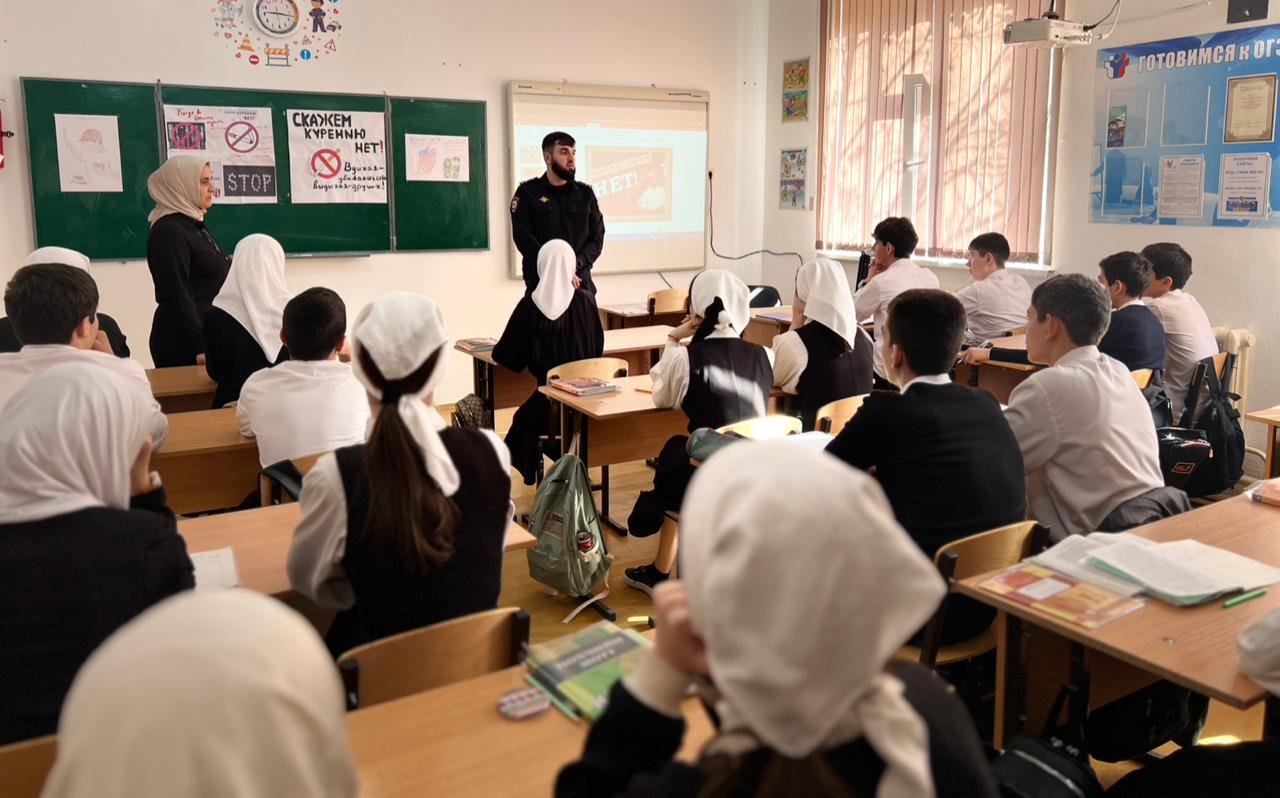 В целях профилактики безнадзорности и правонарушений, инспектор ПДН Тарамов У. В. 18.11.2024 года провёл беседы с обучающимися 7-9 классов о пропусках и поведении в школе и на улице. До ребят также было доведено чтобы они в темноте время суток находились дома, напомнили о правилах пользования телефонами, чтобы не заходили на незнакомые и подозрительные сайты.