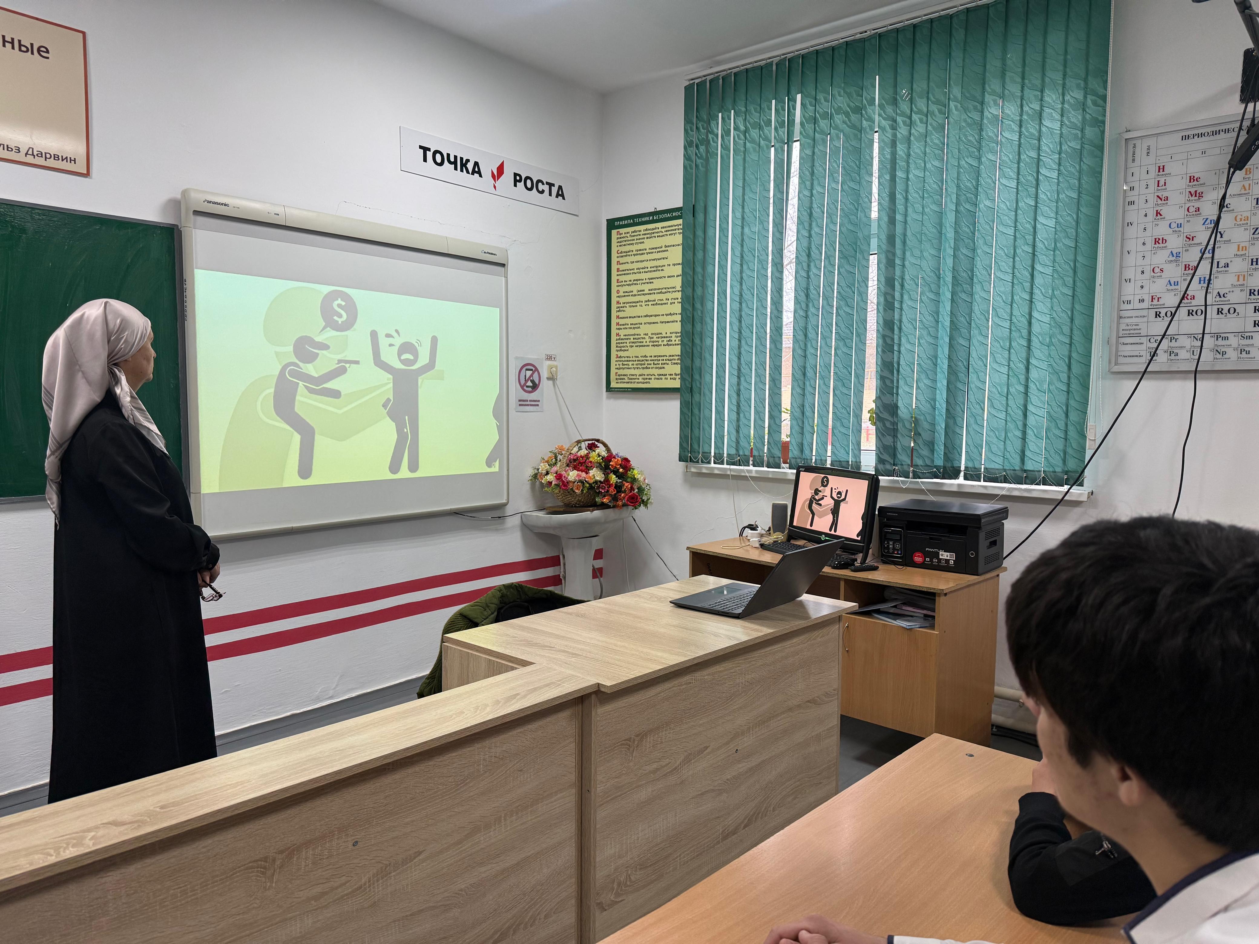 22.01.2025 года заместитель директора по ВР Кочорова С. Н. организовала в старших классах просмотр видеофильма об истории терроризма "Терроризм, его истоки и последствия".Обучающиеся узнали как себя вести при захвате террористами автобуса, при захвате здания.