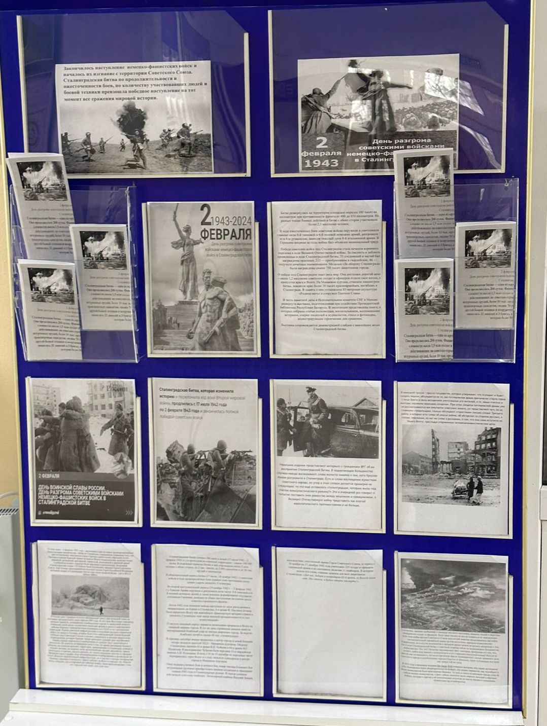 2 февраля отмечается День разгрома советскими войсками немецко-фашистских войск в Сталинградской битве в 1943 году. Сталинградская битва стала одним из крупнейших сражений в ходе Великой отечественной войны и переломным этапом Второй мировой войны. Педагог-организатор МБОУ "Шелковская СОШ №2" оформила информационный стенд к этой дате.