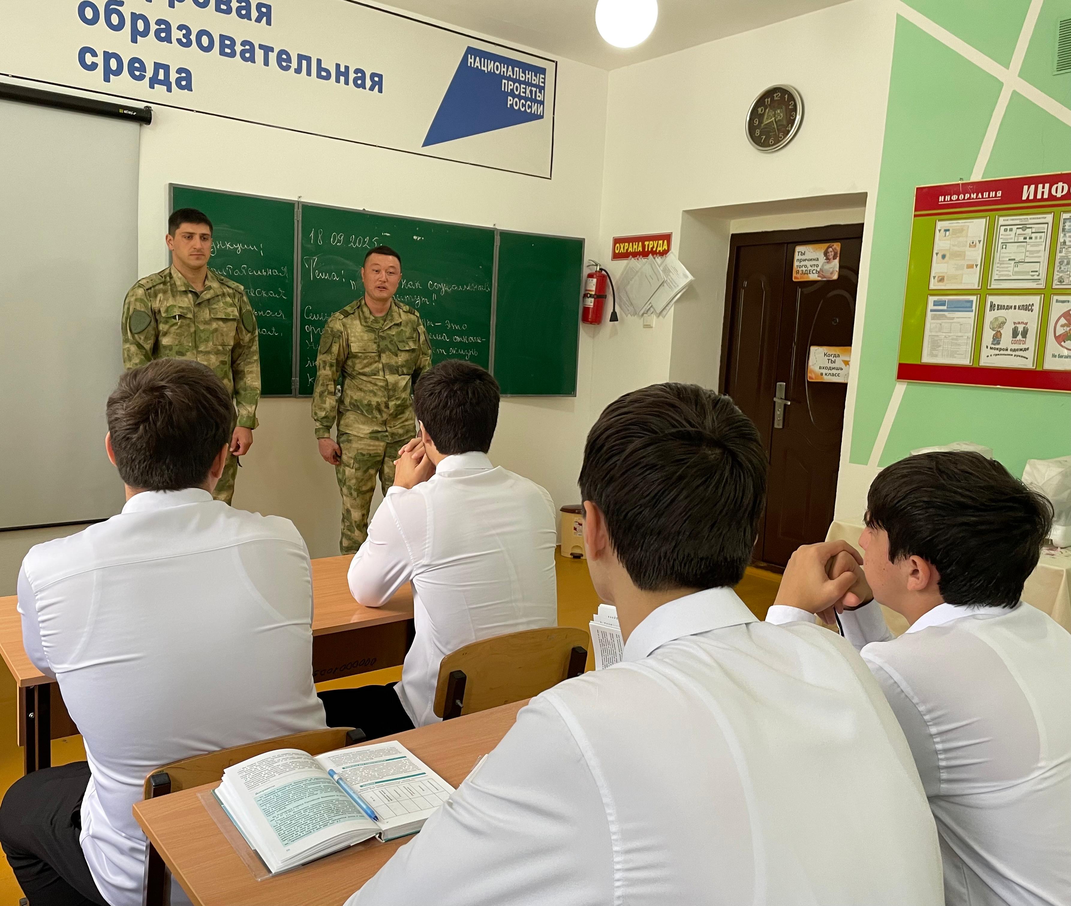 В целях патриотического воспитания, формирования активной гражданской позиции сегодня прошла встреча представителей военной части №6904 г. Шелковская с обучающимися старших классов. Сержант Исмухамбетов Э. Х. и прапорщик Абдулаев И. М. провели беседу о профориентации выпускников, рассказали о военных профессиях. Во все времена было почетно быть военным. Для современной молодёжи как никогда в это сложное время, важно задумываться о патриотическом воспитании. Всегда военные стоят на страже Родины, и сейчас когда идет освободительная операция в Украине, молодежь должна понимать, что Россия - это страна, которая использует свои вооружённые силы исключительно для поддержания всеобщего мира. Надеемся из наших мальчишек вырастут настоящие защитники, люди с четко выраженной гражданской позицией.