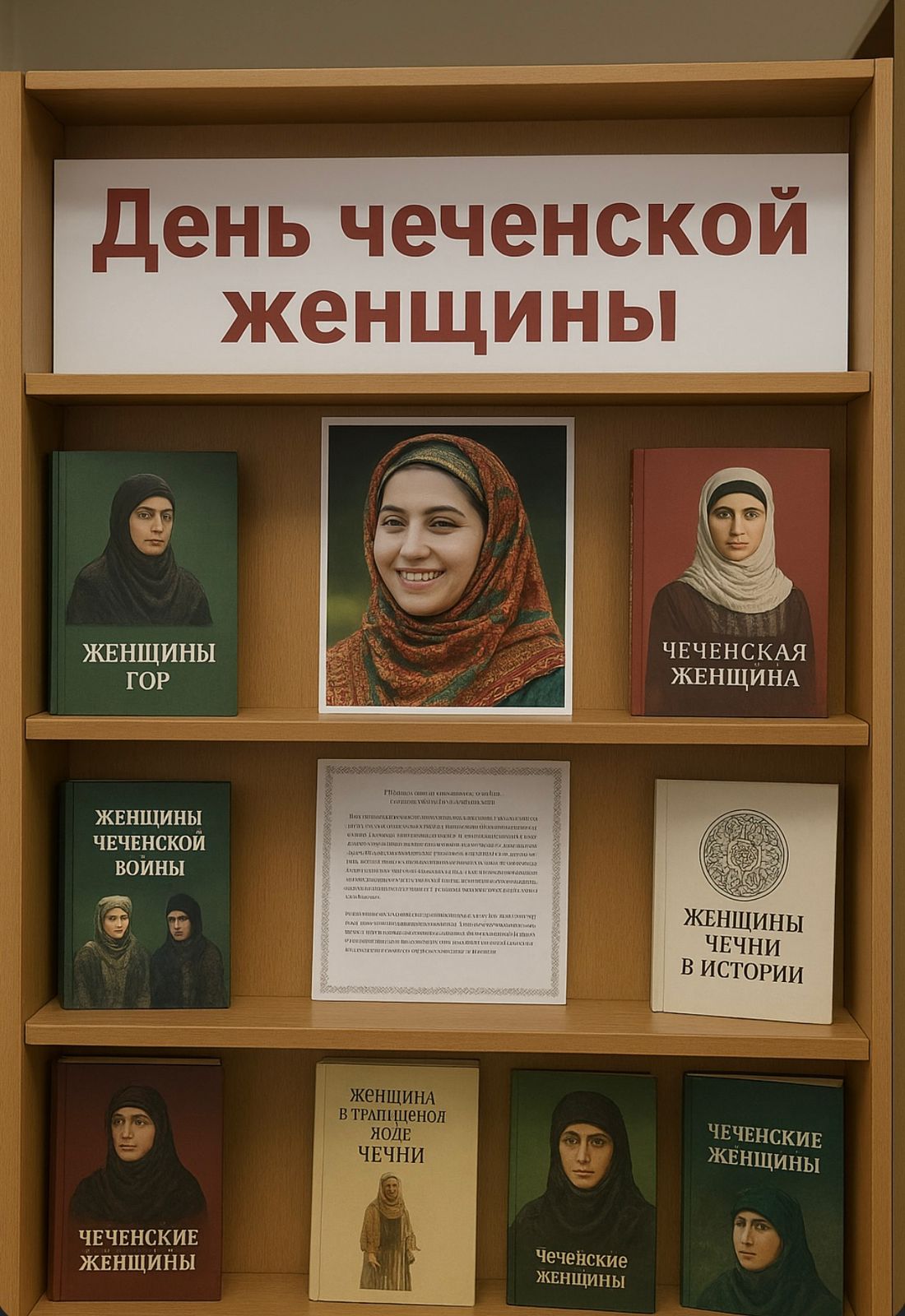 18 сентября, в соответствии с планом мероприятий посвящённых Дню чеченской женщины, библиотекарем школы Торсаевой М. Р. оформлена выставка печатного материала "Чеченская женщина в произведениях чеченских писателей и поэтов". На выставке представлены произведения и статьи чеченских писателей, поэтов, публицистов о чеченских женщинах.