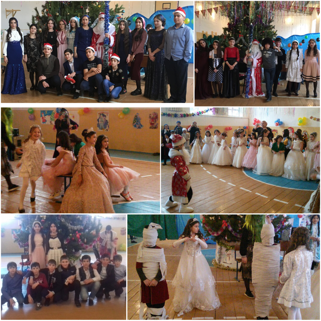 В рамках подготовки новогодних праздников в школе был проведен ряд мероприятий, которые осуществлялись в период с 15.12.17г. по 31.12.17 года. Был утверждён график проведения новогодних праздников. Проведены беседы с педагогами, обучающимися и родителями о профилактике детского травматизма, мерах безопасности на водоемах в период ледостава. До 15.12.2017г. было оформлено фойе школы, спортивный зал, в котором располагалась ёлка, обучающимися оформлены их классные кабинеты. Новогодние праздники проходили в течение трех дней. С 28 по 30 декабря, было организовано Новогоднее представление для 1- 10 классов, которое проходило в спортивном зале. Сценарий мероприятия был написан заместителем директора по воспитательной работе Радуевой М.Ш. Для осуществления сценария были задействованы Джалалова Зарета и Дазарова Залихан(Снегурочка) ученицы8 "Б" и 10 класса, ученица 8 "А" класса Саитова Радима (кикимора) и учениц 8 «А» класса ЧербиеваРазет (Баба Яга), Ученицы 10 класса Дибирова Раяна и Кусаева Элина (ведущие), ученица 8 «А» ЗайрхановаЖайна (Сорока), ученики 9-10 класса Дацаев Асхаб и Зайтаев Хамзат (Дед Мороз).Классные руководители должны были подготовить сценарий со своими музыкальными или игровыми номерами, который должен был быть включен в общешкольный новогодний сценарий. Мероприятие прошло на хорошем уровне. Обучающиеся 1-8-х классов все были в новогодних костюмах. Показали подготовленные номера: стихи, песни, танцы, сценки. Ребята принимали активное участие в ходе подготовки и проведения елки и новогодних мероприятий: отгадывали загадки, танцевали, ставили новогодние сценки. Каждый стремился показать свое мастерство Деду Морозу, и получили подарки от него. Для учеников 9-10 классов был организован Новогодний карнавал, в котором были задействованы. Обучающиеся старших классов пели новогодние песни, показывали юмористические сценки, а в конце мероприятия была зажигательная лезгинка.Все классные кооллективы подготовили номера на высшем уровне. Участников приветствовали Дед Мороз и Снегурочка. Веселые, задорные игры, хороводы, новогодние песни порадовали детей и взрослых гостей мероприятия. После праздника дети получили подарки от Деда Мороза.