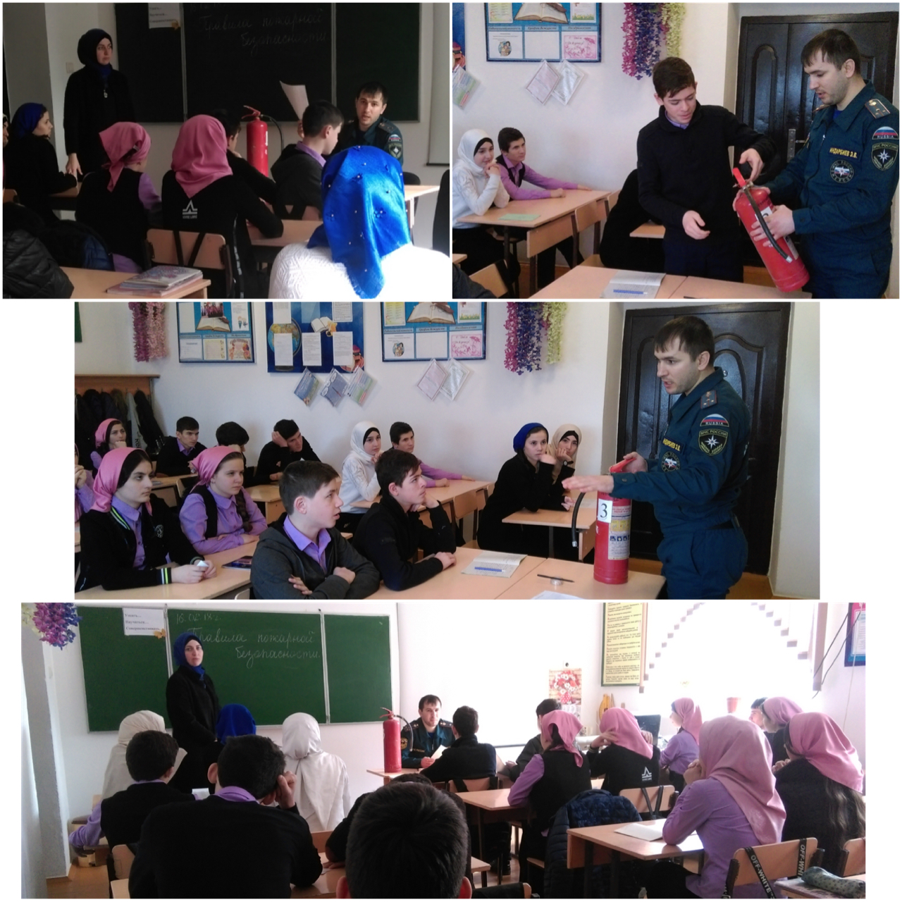 07.02.2018г. инспектором ПСЧ - 20 старшим лейтенантом внутренней службы Индарбиевым Э.В. была проведена беседа в 9-10 классах на тему: "Правила поведения при обнаружении пожара".