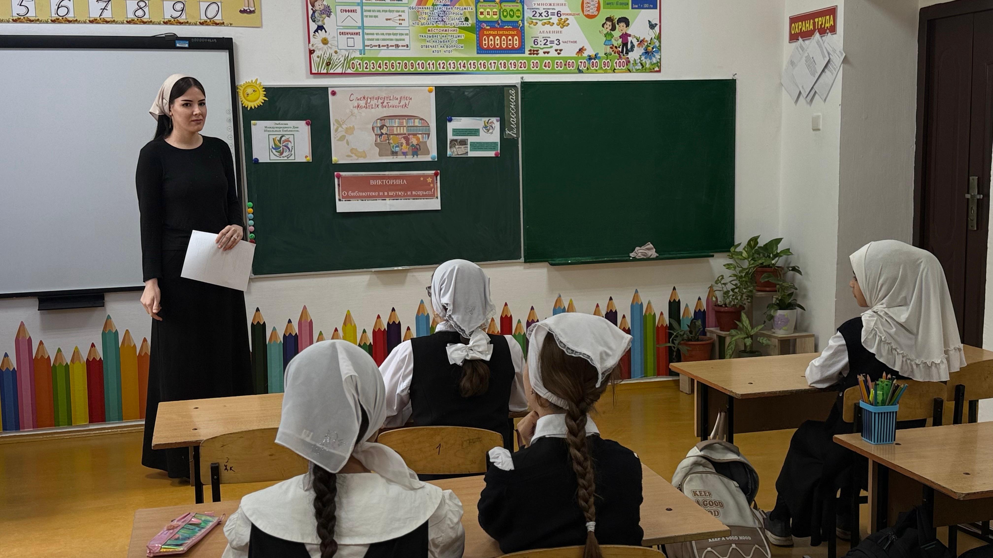 Также библиотекарь Торсаева М.Р. провела интересную викторину для учащихся 4 класса на тему «О библиотеке и в шутку , и всерьез» Основной целью этих мероприятий было развитие интереса детей к чтению и знакомство с волшебным миром сказочных героев.