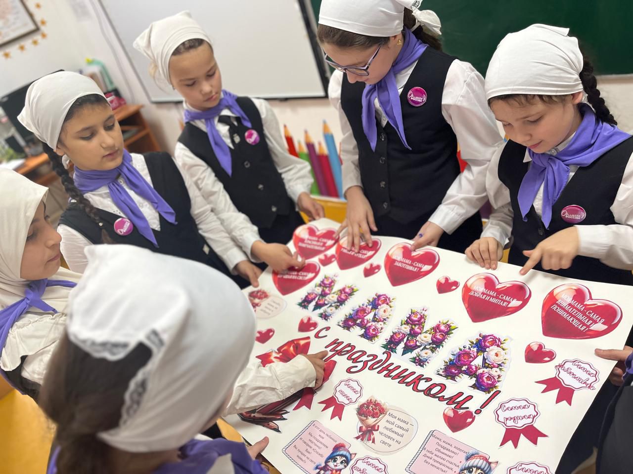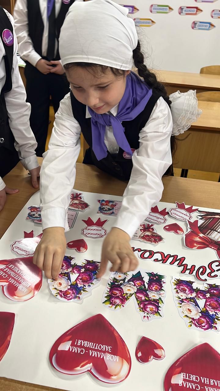 В МБОУ «СОШ №2 г. Шелковская» активисты Движения Первых вместе с орлятами России ярко, творчески и с огромным вдохновением присоединились к подготовке ко Дню матери. Ученики 4 класса под чутким и заботливым руководством своего классного руководителя Алдабировой создали праздничный плакат, наполнив его теплом, нежностью и искренними чувствами к своим мамам.