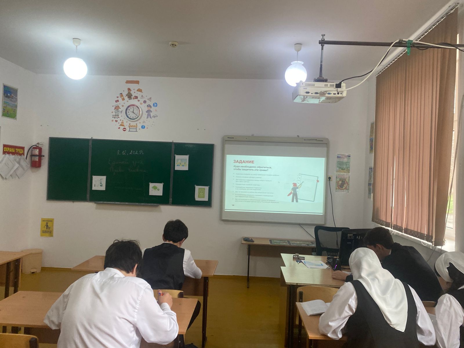 Целью урока являлась формирование у обучающихся понимания основ прав и свобод человека, ознакомление с международными стандартами защиты прав человека, развитие уважения к правам других людей, воспитание толерантности и гражданской ответственности. Учитель истории и обществознания Исламгериева М. И. пояснила, что такой урок направлен на повышение уровня правовой культуры молодежи и содействие формированию правового сознания.